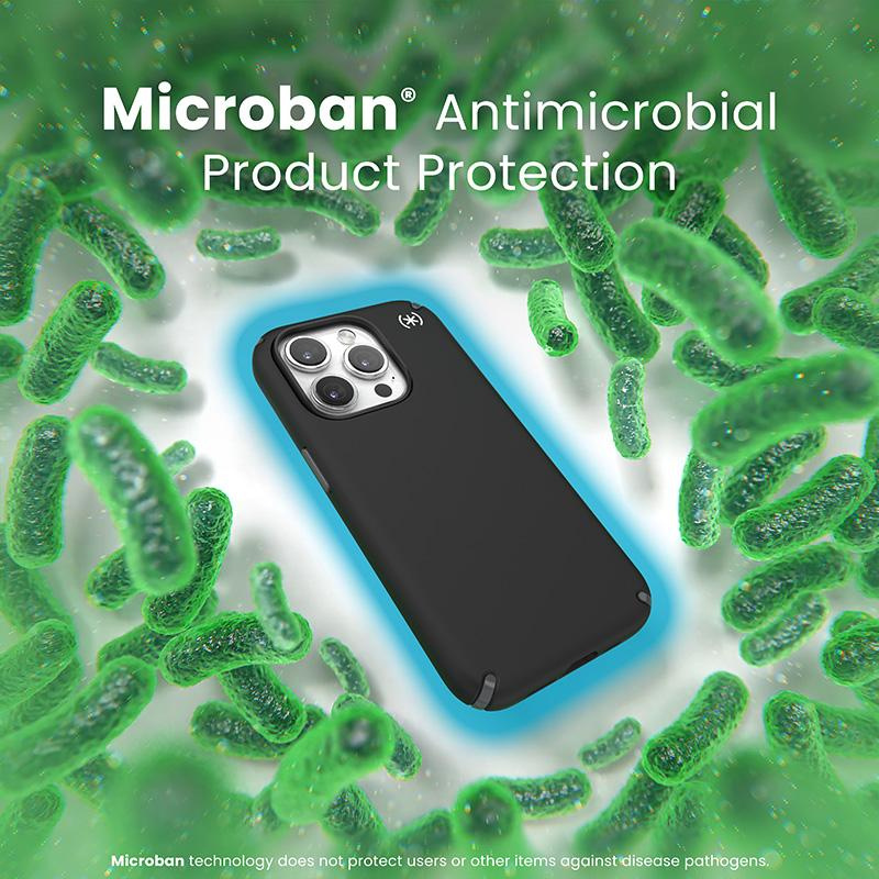 Ultra wytrzymałe etui do iPhone’a 15 Pro z MagSafe oraz ochroną antybakteryjną firmy MICROBAN® - światowego lidera rozwiązań przeciwdrobnoustrojowych z szerokim portfolio ponad 25 zatwierdzonych technologii. Aktywny składnik wbudowany w strukturę etui Presidio2 Pro powstrzymuje 99% bakterii, które gromadzą się na jego powierzchni. Technologia MICROBAN® zapewnia w ten sposób dożywotnią ochronę przed bakteriami, które powodują odbarwiania oraz nieprzyjemny zapach.Dzięki zastosowaniu innej technologii o nazwie Armor Cloud™, obudowa Speck jest również odporna na upadki z dużej wysokości (nawet 4 metrów). System mikrokapsułek wewnątrz ścianek etui działa na podobnej zasadzie, co poduszki powietrze stosowane w samochodach. W momencie upadku na twarde podłoże, kapsułki amortyzują siłę uderzenia przy pomocy skompresowanego w nich powietrza.