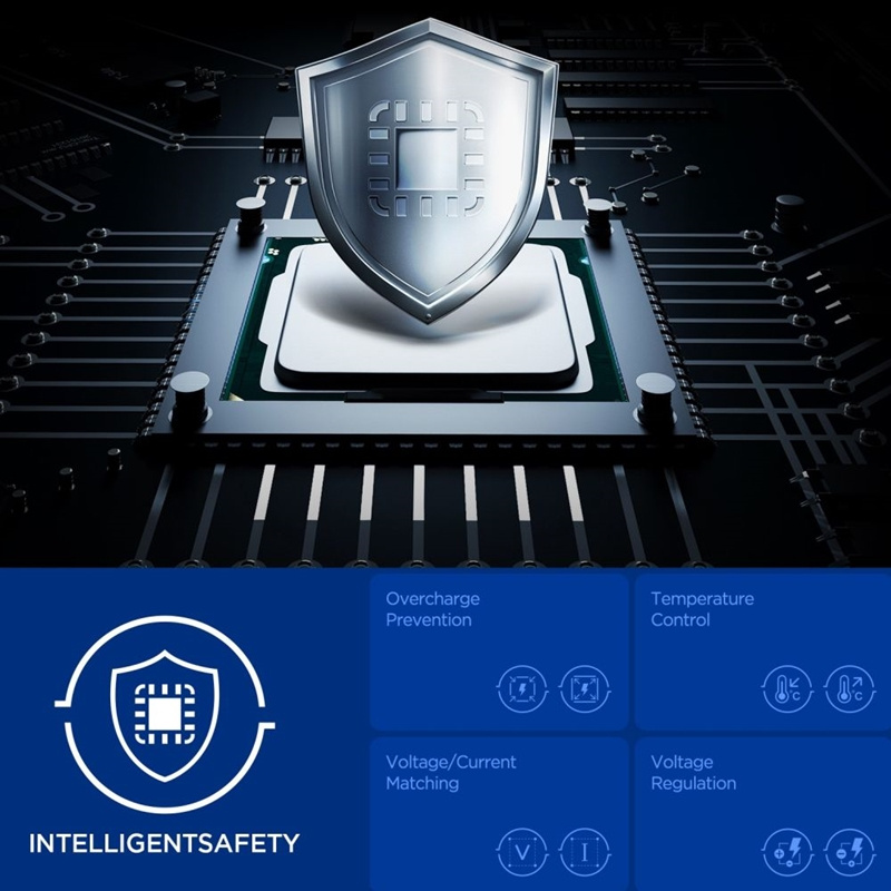 · Bezpieczne zasilanie dzięki funkcjom Overcharge Prevention, Voltage Matching i Voltage Regulation