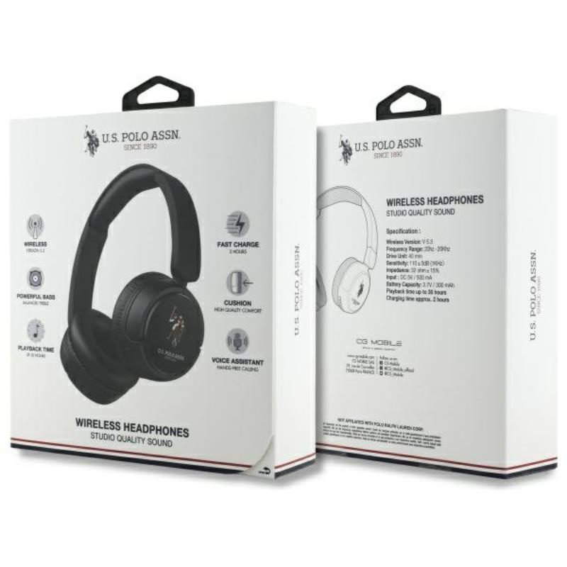 US Polo Assn DH Color Logo - Bezprzewodowe słuchawki nauszne Bluetooth V5.3 (czarny)