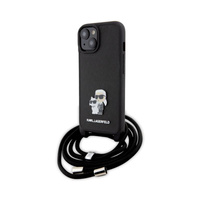 Karl Lagerfeld Crossbody Saffiano Metal Pin Karl & Choupette - Etui iPhone 15 Plus (czarny)