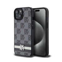 DKNY Leather Checkered Mono Pattern MagSafe - Etui iPhone 15 Plus / 14 Plus (czarny)