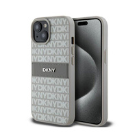 DKNY Leather Mono Stripe & Metal Logo - Etui iPhone 15 Plus / 14 Plus (beżowy)